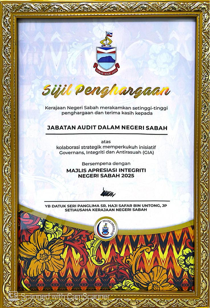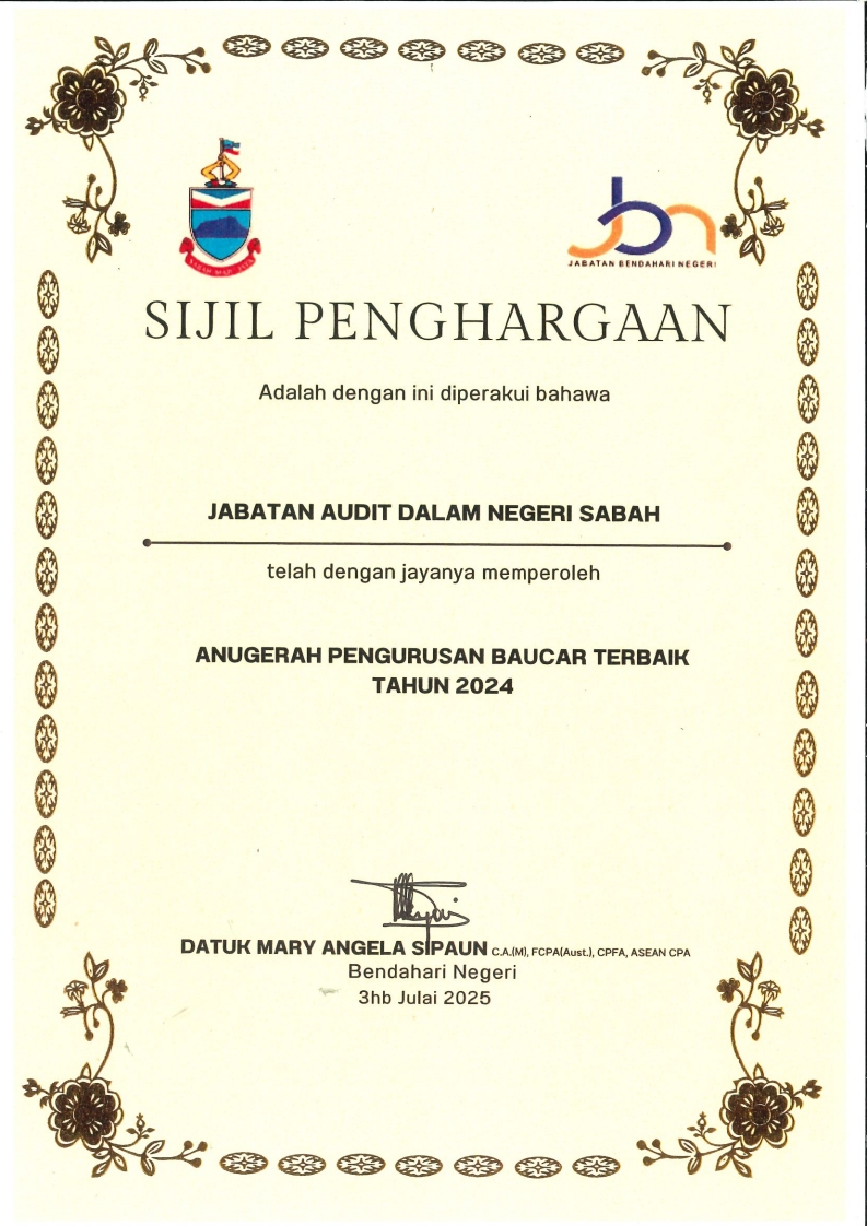 SELAMAT DATANG KE LAMAN WEB RASMI JABATAN AUDIT DALAM NEGERI SABAH “Audit Berkualiti dan Profesional” Warga JADNS Aduan dan Maklum Balas Borang SIJIL PENCAPAIAN JABATAN
